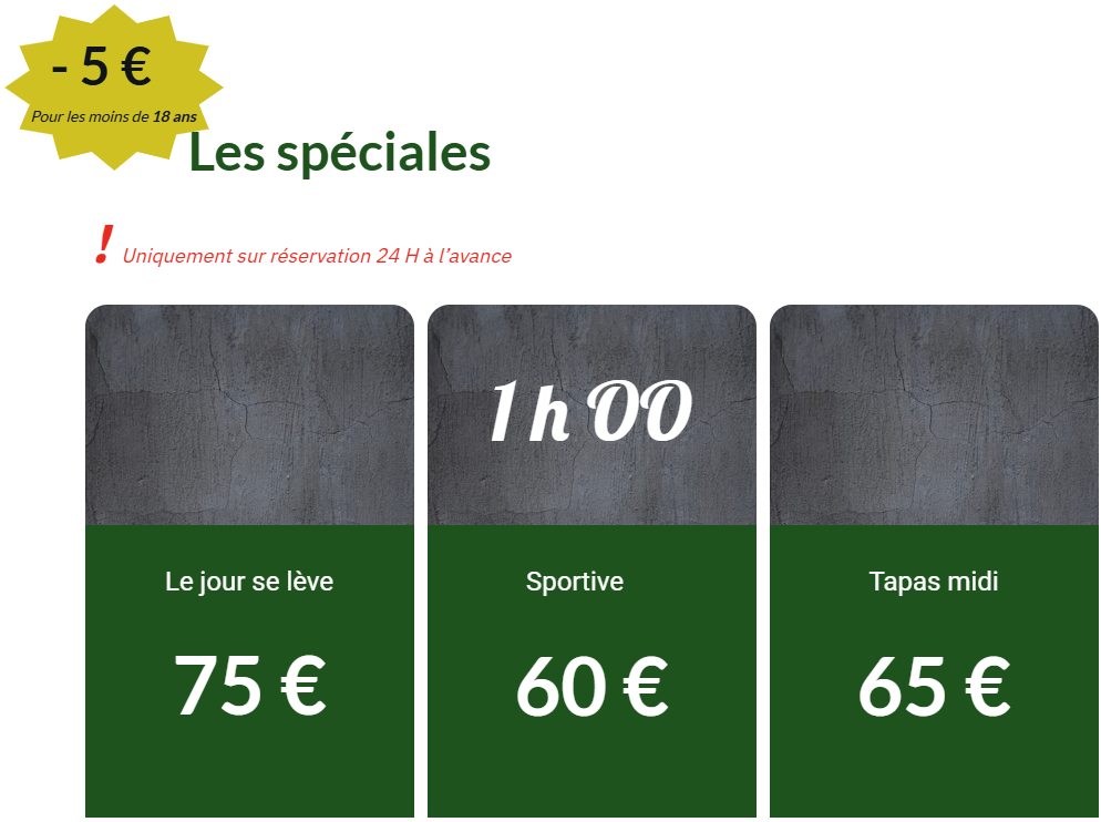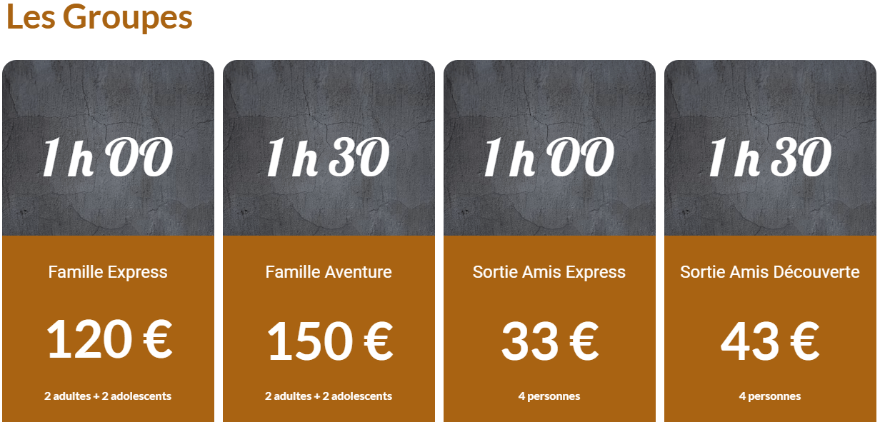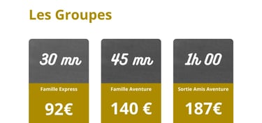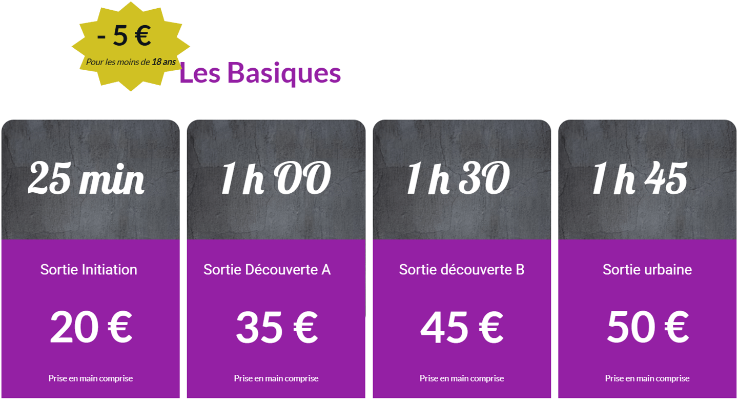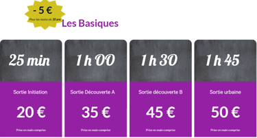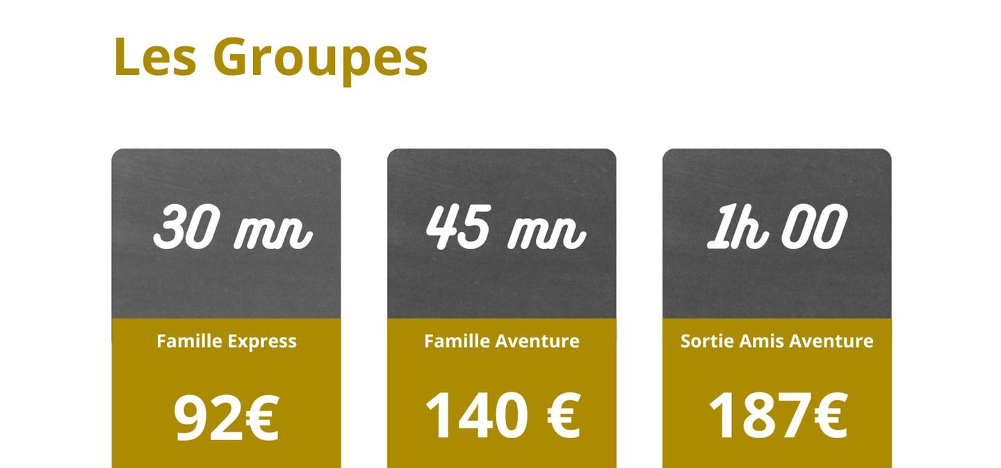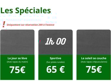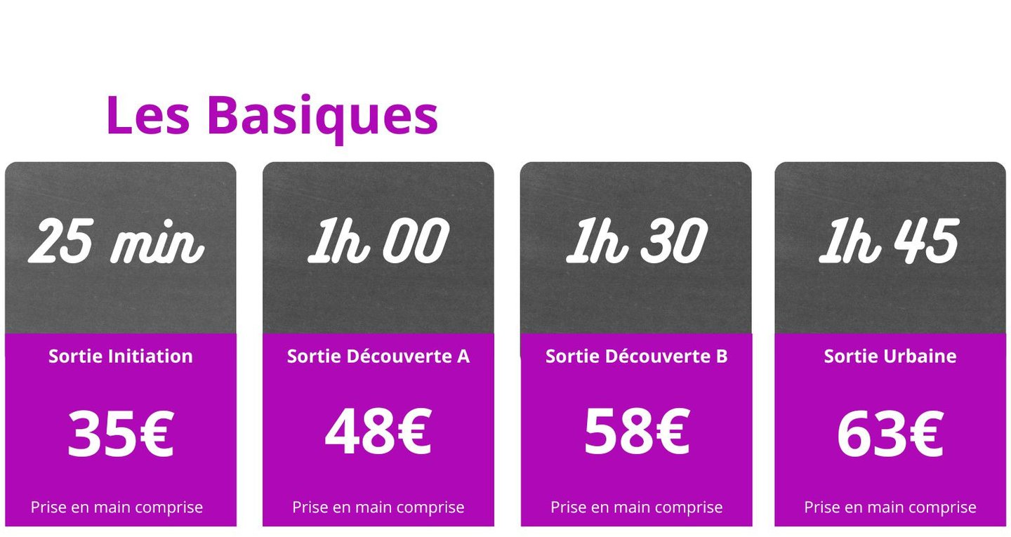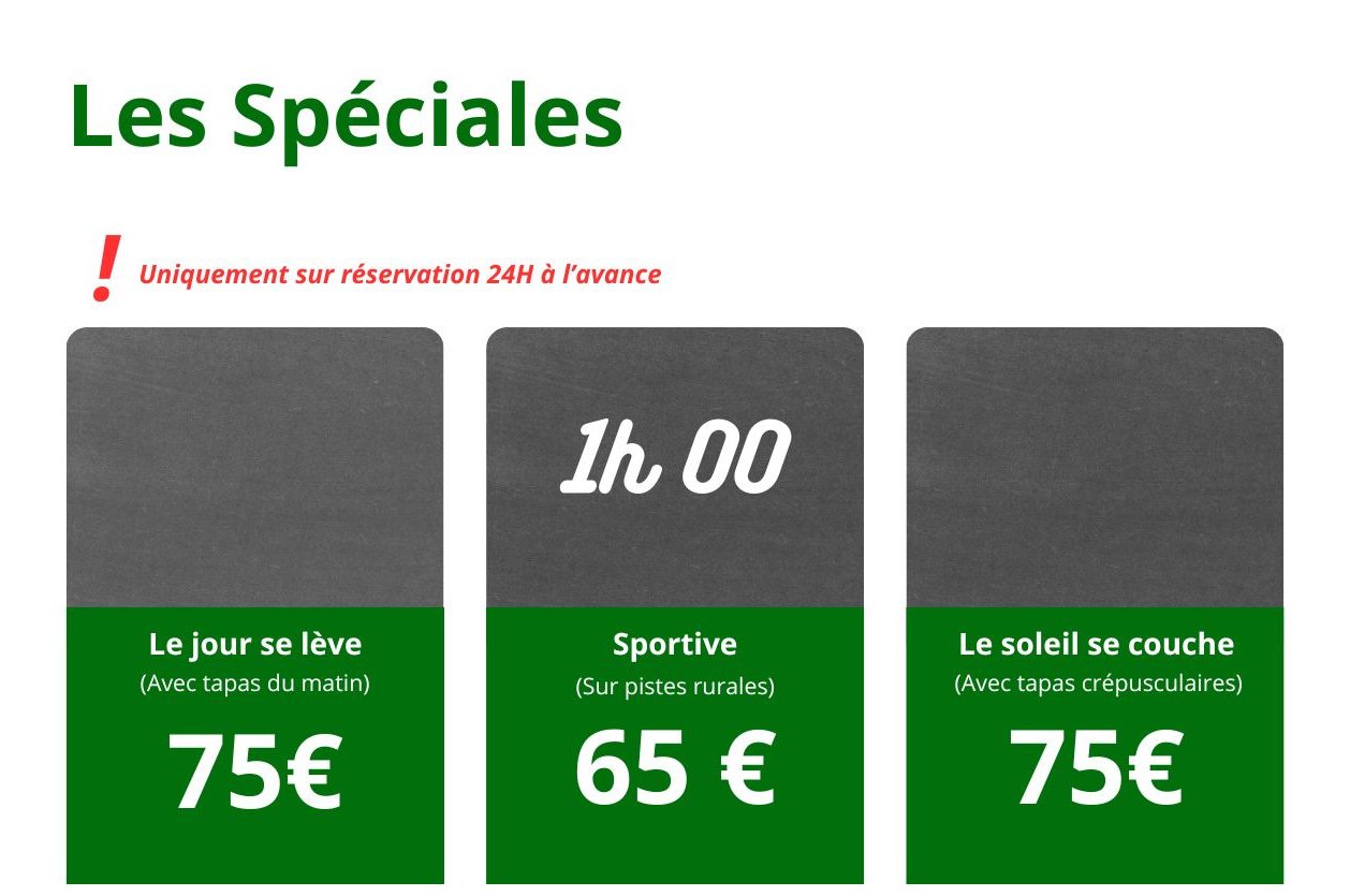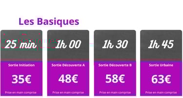 Trois formules pour tous les envies : les Basiques pour démarrer, les Spéciales pour vivre des expériences uniques, et les Groupes pour partager la balade à plusieurs.